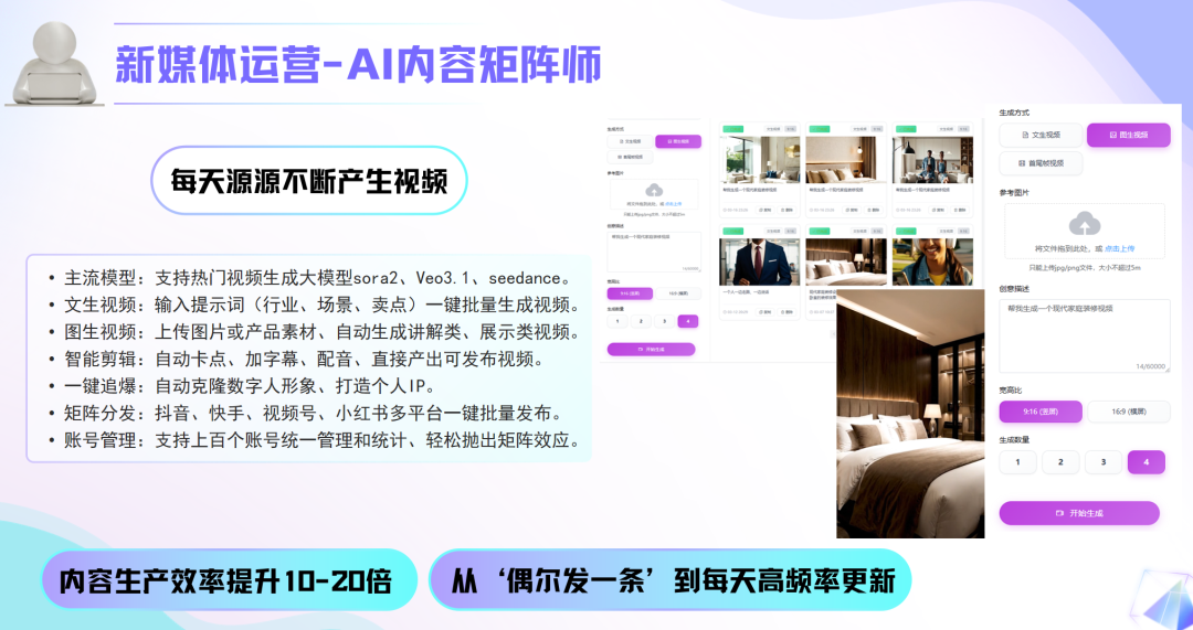 这个软件能直接帮你解决,它支持现在常用的AI短视频功能,还能自动剪辑,跟上热门趋势,每天能自动出好多条短视频,还能自动发到各个平台,不用你手动一个个操作,省下来的时间能多做好多事。